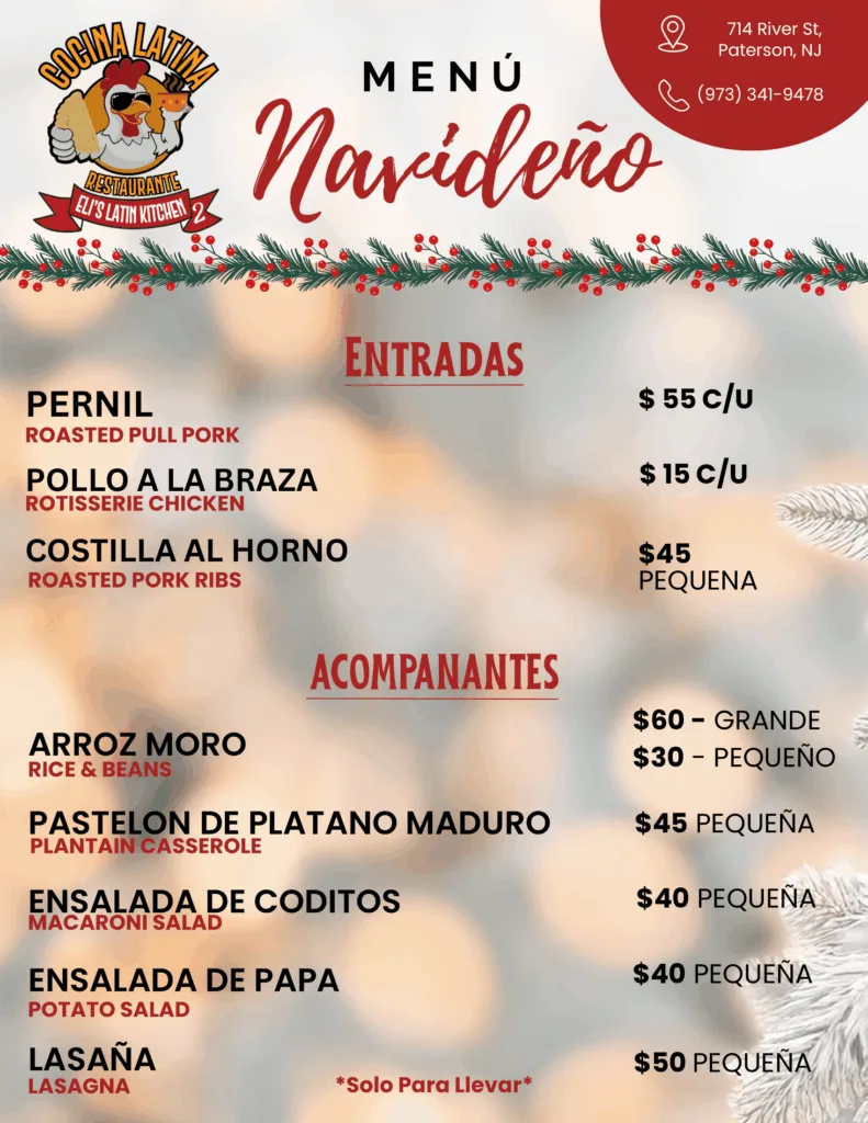 Welcome to Eli’s Latin Kitchen 2—your new culinary home in Paterson! More than just a restaurant, we are a passionate celebration of the entire Hispanic world’s rich and soulful flavors. Rooted in the traditions passed down through familia y herencia, we invite you to experience the authentic taste of Latin Caribbean cuisine, prepared with the time-honored home recipes that Eli has perfected over decades. Whether you’re craving our famous empanadas or a hearty serving of our rotisserie chicken, we bring the warmth, flavor, and community spirit of the Caribbean kitchen straight to your table. ¡Sabor que te recuerda a casa!